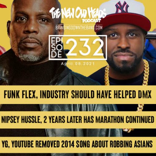 The New Old Heads podcast episode 232 had talks on Funkmaster Flex saying that DMX's music industry friends should have helped him more, if Nipsey Hussle's "Marathon Continues" is no longer a thing, and YG's 2014 song being censored by YouTube for alleged Chinese language deemed inappropriate.